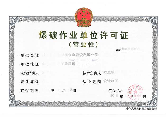 爆破作业单位许可证(正本)